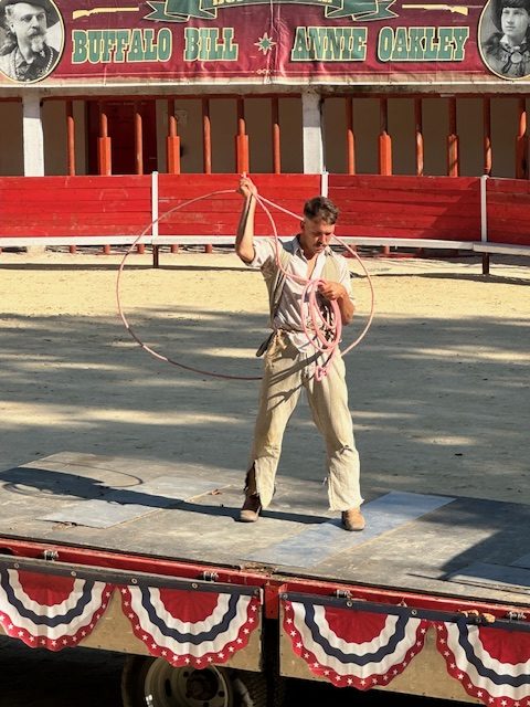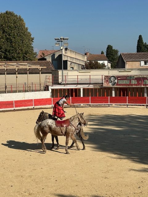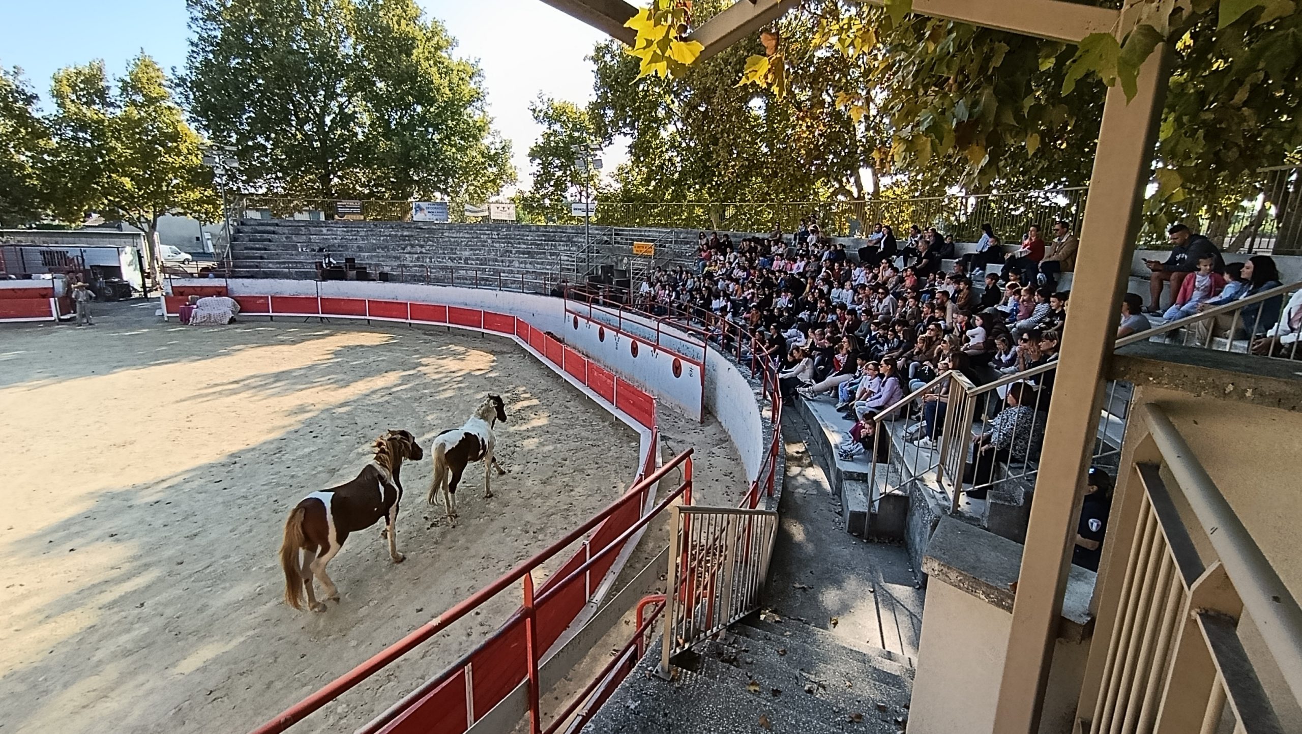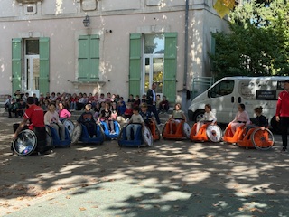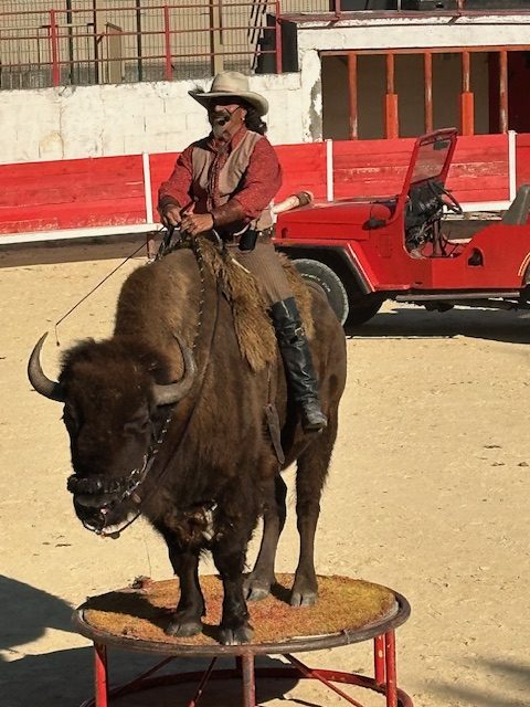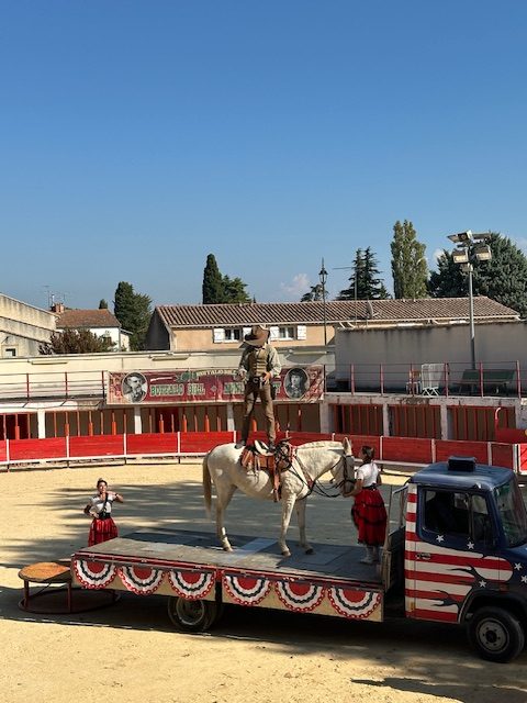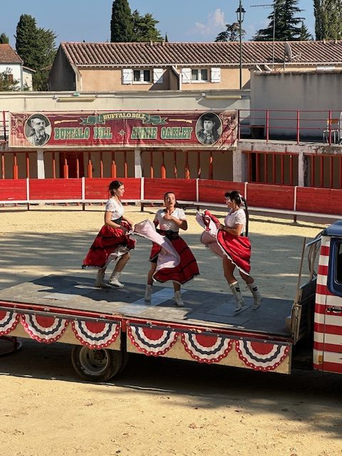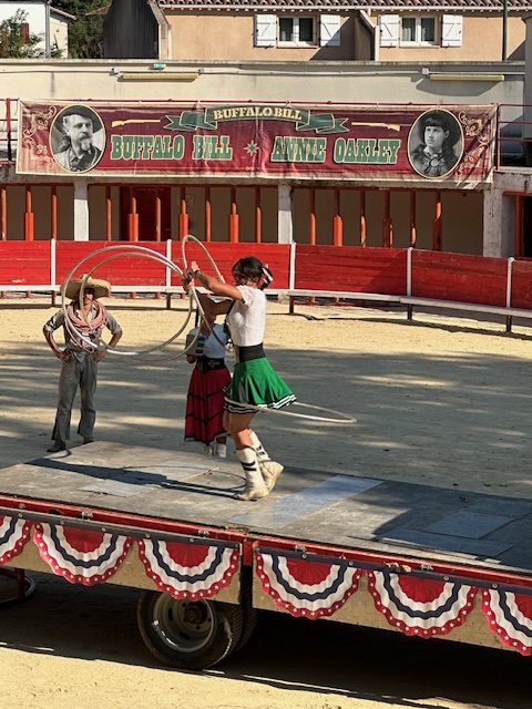 L’après-midi a réuni tous les élèves de l’école aux arènes de Cabannes pour un beau spectacle de Buffalo Bill avec des cow-boys et des indiens, des chevaux, un bison et un chien très habile ! Une belle colonne d’enfants a traversé notre village encadrée par la police municipale et les parents accompagnateurs.