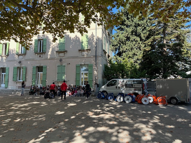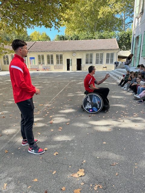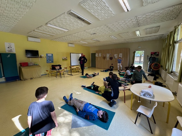 Le vendredi était axé sur les plus grands avec une formation 1er secours (PSC1) pour les élèves de CM2, et une découverte du rugby en fauteuil roulant pour les CE1 et CE2 afin de les sensibiliser au handicap au quotidien et à la pratique d’un sport collectif en fauteuil roulant.